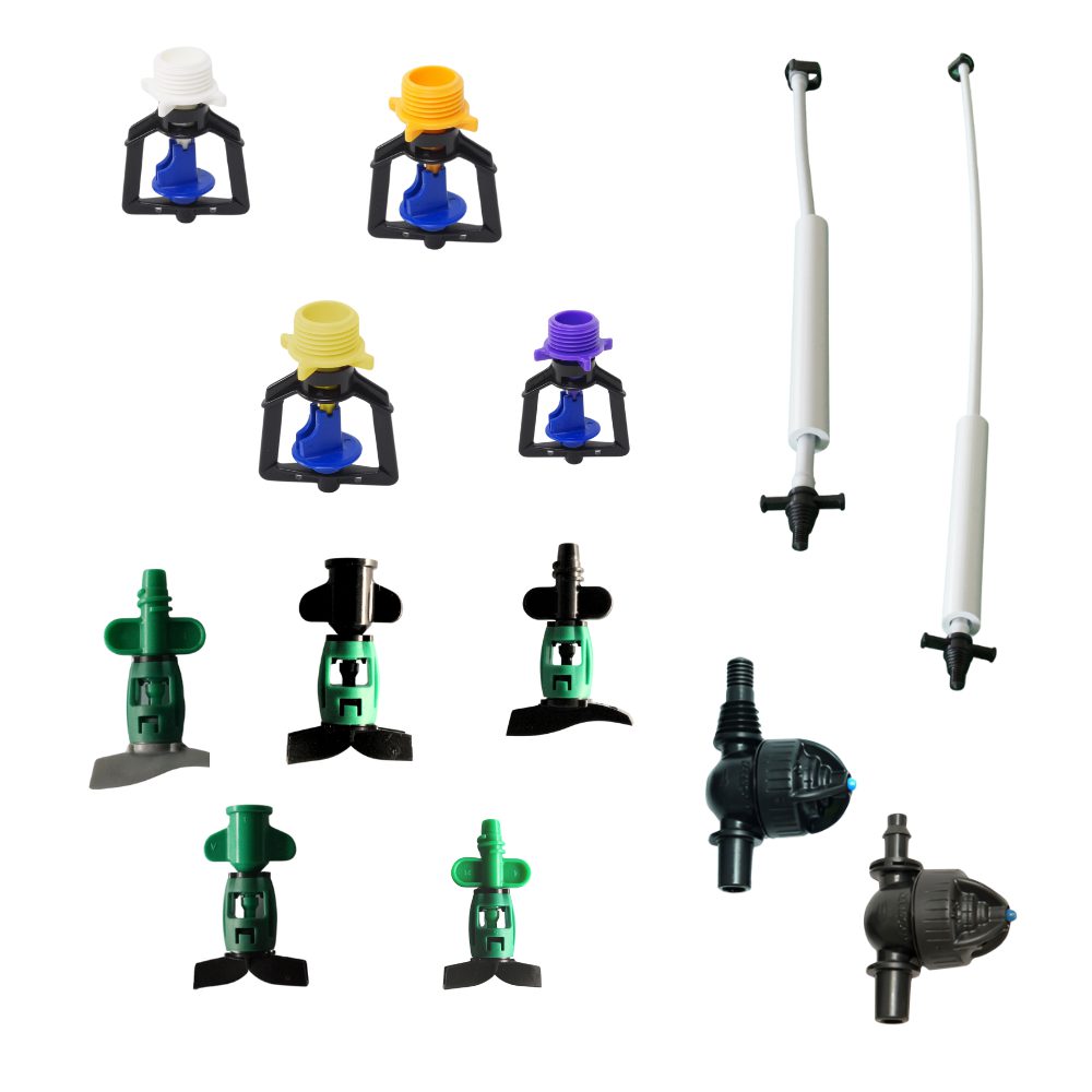 Voor de ongestookte, koude kas, worden sproeiers van het merk Naandanjain aangeraden. Deze sproeiers zijn met een bajonet gekoppeld aan het anti-druppelelement waardoor deze bij vorst niet kapot vriezen, wat wel het geval is met de Rivulis sproeiers.